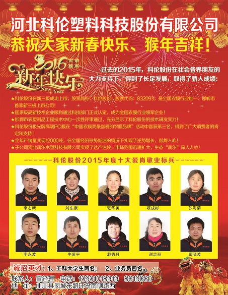 點擊數(shù):73262016-01-28 08:30:38 來源: 科倫塑業(yè)集團股份有限公司|農(nóng)用薄膜|po膜|轉(zhuǎn)光膜|EVA消霧膜|高效日光膜|棚膜|地膜|包裝膜|土工膜|