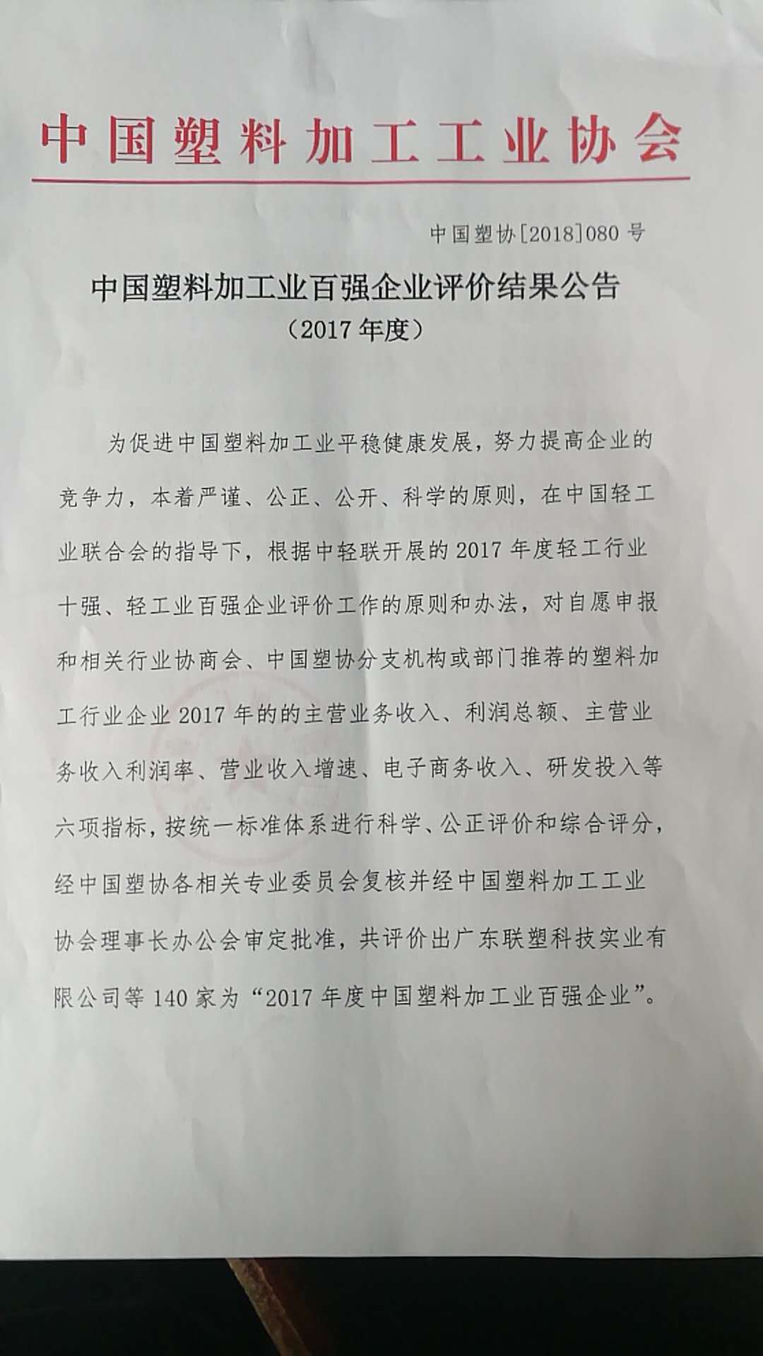 近日,經(jīng)農(nóng)膜專委會推薦,中國塑料加工工業(yè)協(xié)會評選,科倫股份被評為“中國塑料加工業(yè)百強企業(yè)”。這是社會各界和廣大消費者對科倫股份的肯定和鞭策,科倫股份將一如既往,以高品質(zhì)的產(chǎn)品和服務(wù)回饋廣大客戶和消費者。